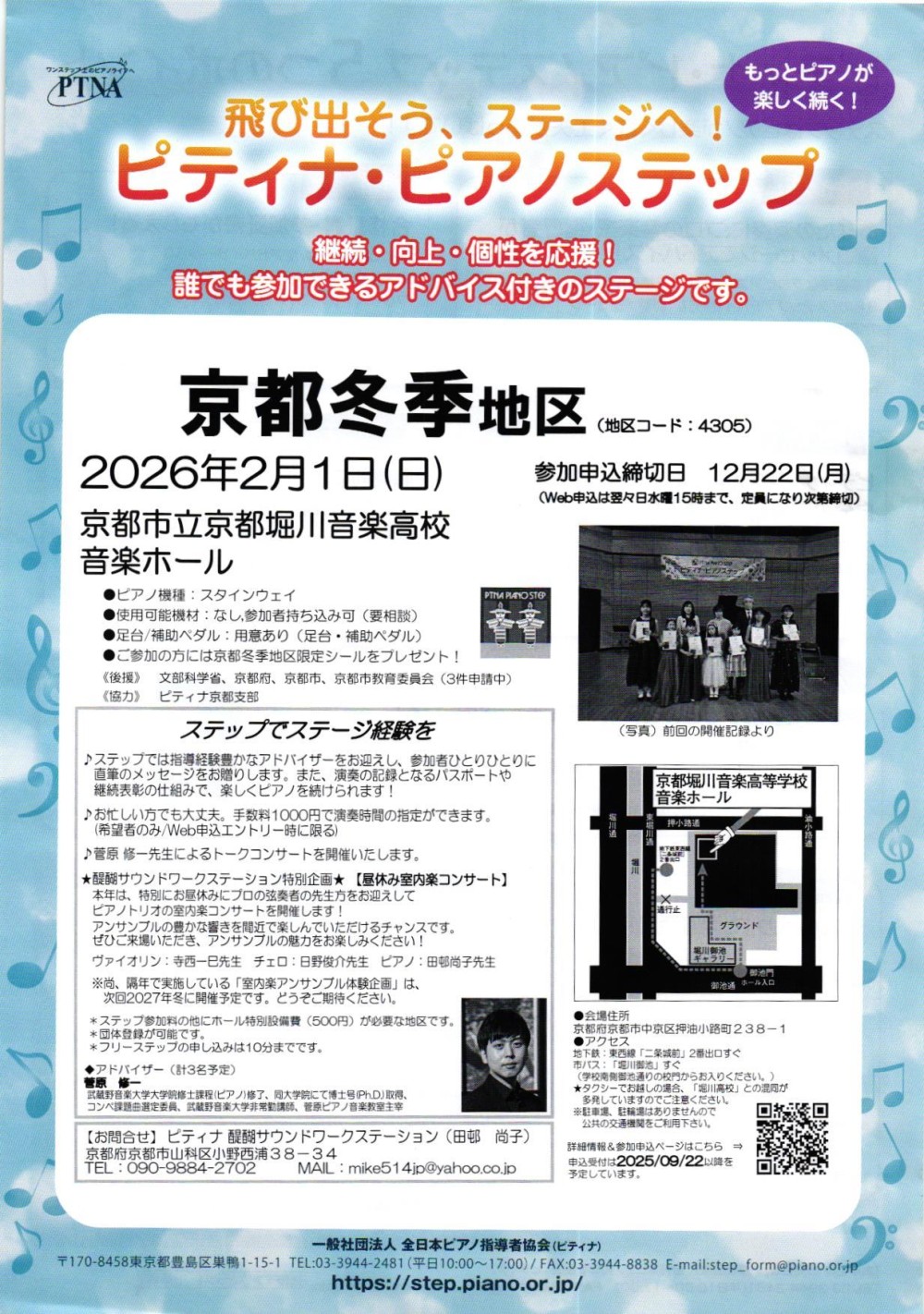 2026年2月1日(日) 音楽ホール 12:30~ ※参加費等はピティナ醍醐サウンドワークステーションにお問合せ下さい
