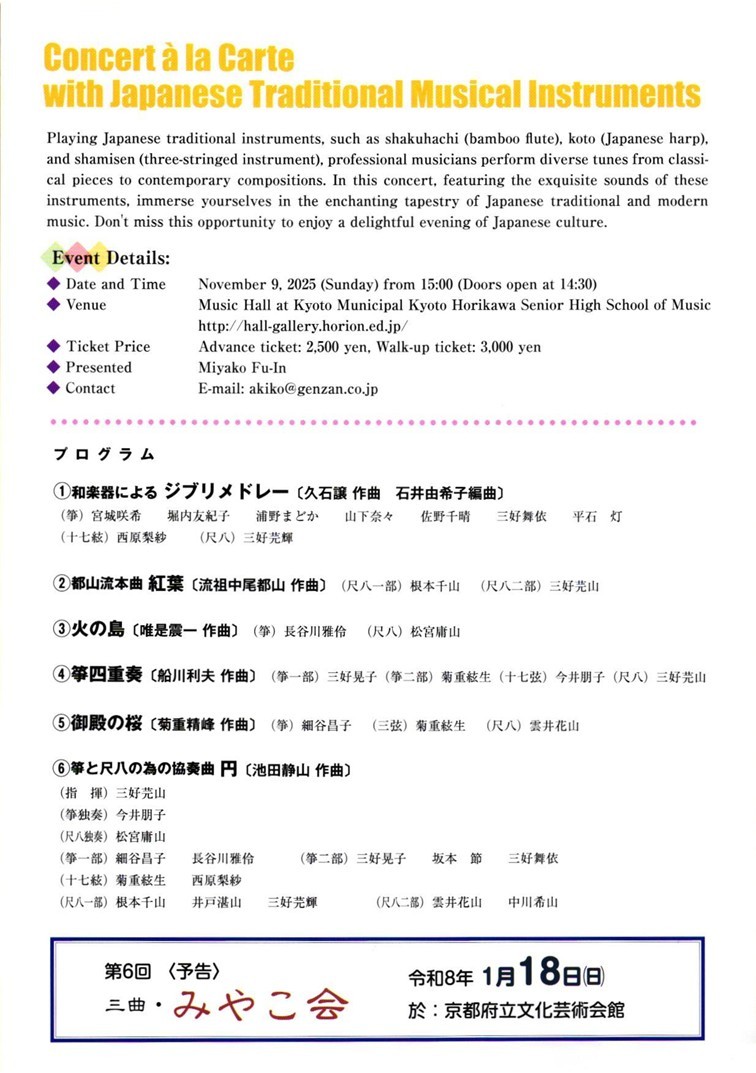 2025年11月9日(日) 音楽ホール 15:00開演(14:30開場) 入場料 前売り2,500円